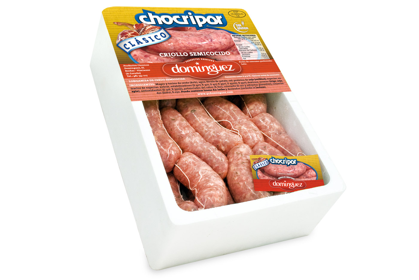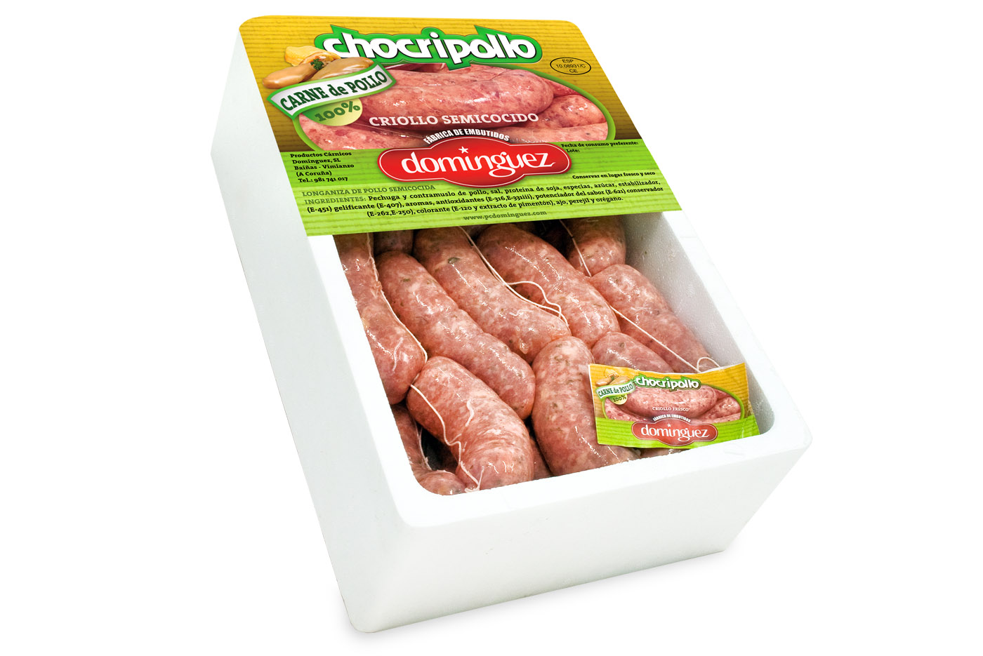 Además elaboramos el Chocripollo®, producido íntegramente con carne de pollo criado en Galicia y concebido especialmente para aquellas personas que, por distintas razones, prescinden del consumo de porcino y que no quieren renunciar al sabor tradicional del auténtico chorizo criollo. Además, destaca su bajo contenido en calorías: 170 por 100 gr de producto.