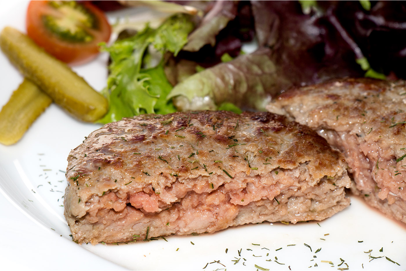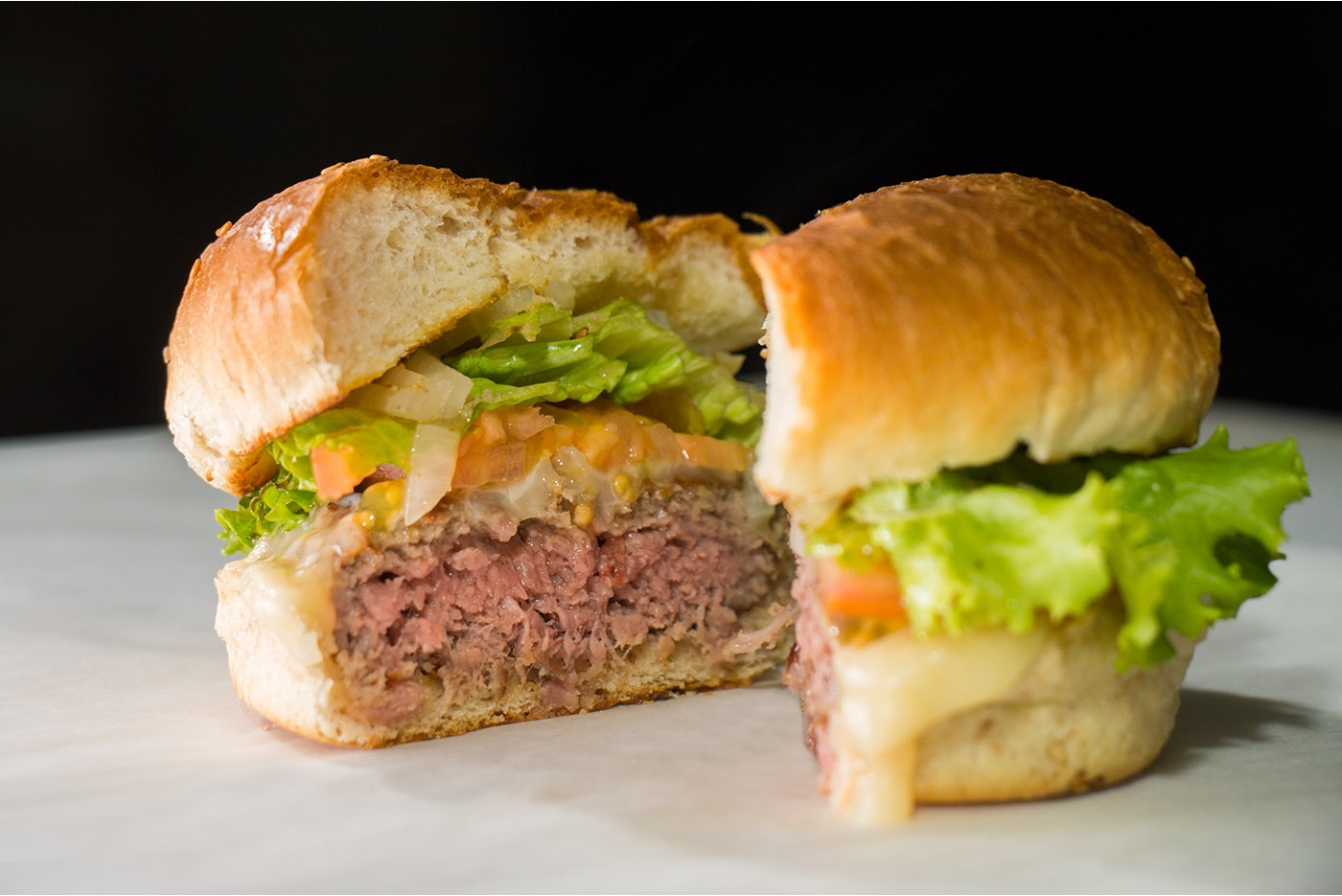 Hamburguesa de sabor fresco y delicado con textura aterciopelada que potencia aún más la ternura de la carne de vacuno joven.