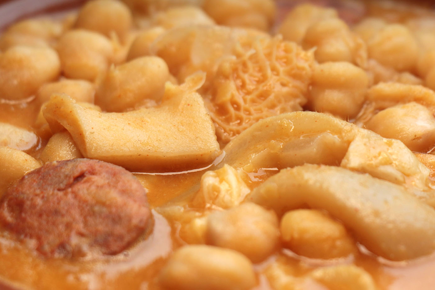 Domínguez te facilita las cosas con este plato preparado para los más exigentes. Elaborado con ingredientes de calidad extra para que no tengas que preocuparte de nada más que de disfrutar un buen plato de callos de ternera gallega con cremosos garbanzos con el sabor que solo nosotros sabemos dar a los alimentos. Para comer como en casa… o incluso mejor.